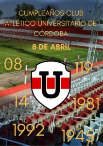 Hoy miércoles 8 de abril el Club Atlético Universitario de Córdoba más conocido como “La U” celebra su 119° aniversario desde fundación. Una fecha para que los que llevan el rojo y blanco puedan presumir de una institución con más de un siglo de historia, pasión y deporte.