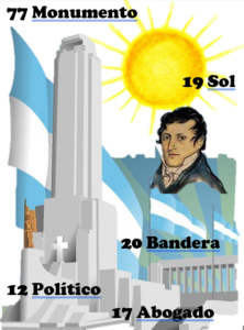 - 12 – 17: el número 12 representa a los políticos y el 17 a los abogados, Manuel Belgrano era un abogado y político