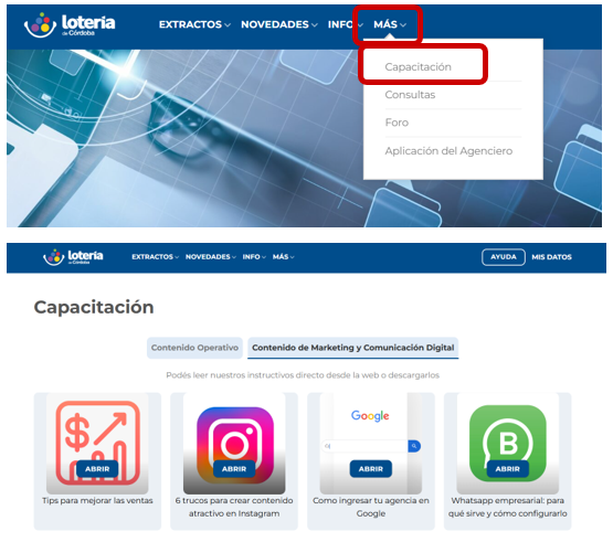 - Sección de Capacitación: donde podrás acceder a contenido operativo e instructivos de los productos y también valiosa