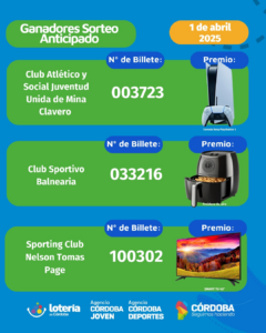 - El Nº 033216 fue premiado con una Freidora de Aire y el club beneficiado con la compra de este billete fue el Club Sportivo Balnearia.