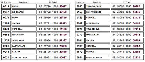 - Solo participan los tickets emitidos desde el lunes al sábado de la semana anterior al sorteo, en cualquier agencia de la provincia.