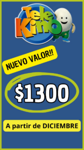 Señor/a Agenciero/a les queremos informar que a partir del sorteo N° 2352 del 01 de diciembre de 2024 el precio del Telekino se modificara a $1300.-.